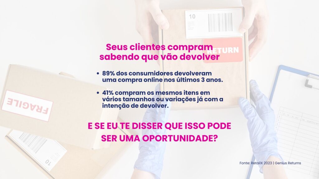 • 89% dos seus clientes já devolveram algo que compraram online nos últimos três anos.¹